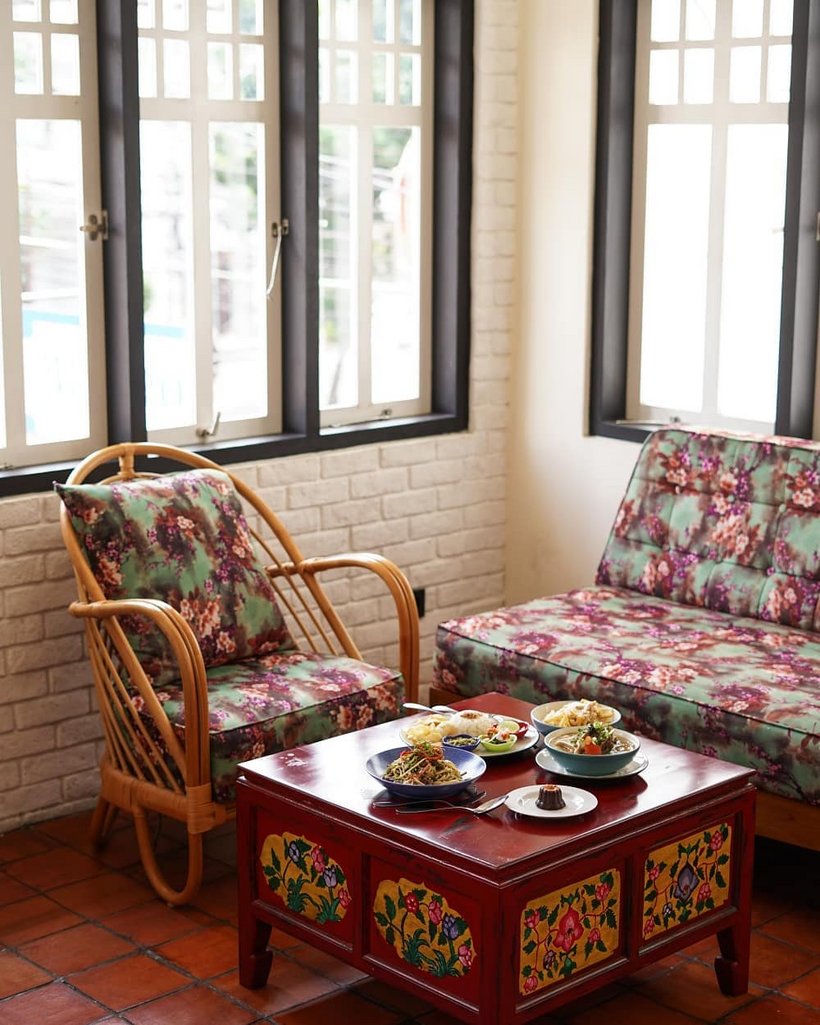 Di area berikutnya yaitu area lantai dua, space areanya ternyata cukup besar. Terdapat area yang konsepnya old style dengan penggunaan meja dan kursi jadul namun berpadu dengan dinding interior yang didominasi bata putih modern. Tak hanya di area tersebut saja, untuk area seatingnya cukup banyak. Kamu bebas memilih mau duduk di area sofa, kursi, ataupun barnya juga bisa.