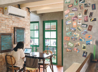 Selain area indoor, ada juga area semi outdoor dari ruangan lantai dua Mikkro Espresso ini. Area semi outdoornya ini didominasi dengan warna hijau pada teralis jendela dan juga langit-langitnya yang tidak terlalu tinggi serta pada motif keramiknya.