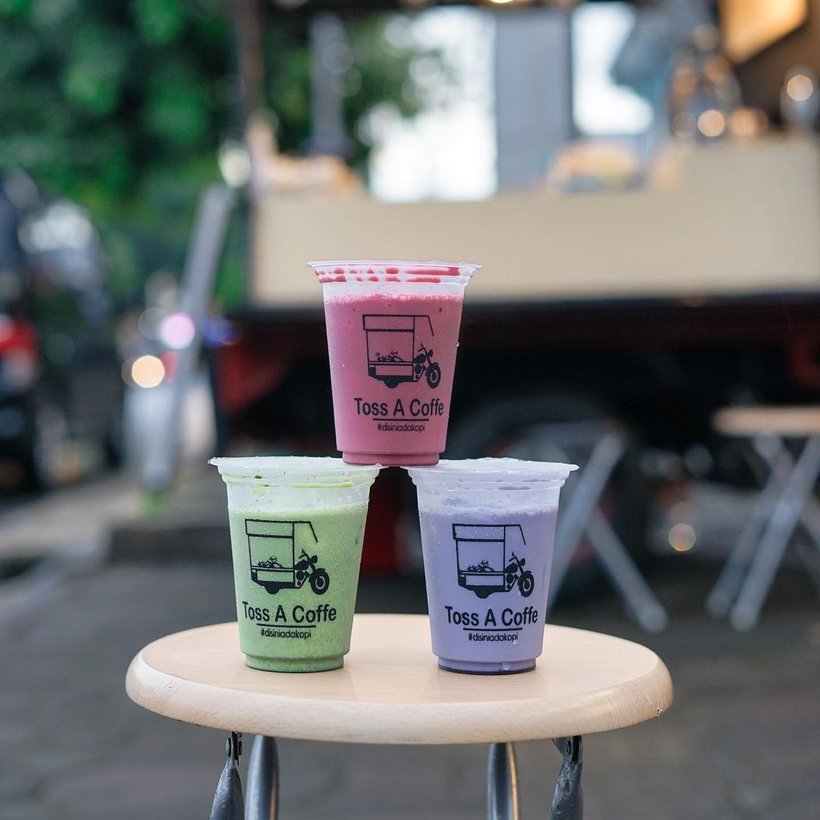 Toss A Coffee tidak menawarkan menu makanan, hanya ada menu minuman saja yang dapat dipesan. Walaupun demikian, kalian tetap dapat merasakan nongkrong dengan santai dan hangat bersama kerabat. Untuk signature, mereka menyediakan summer mocktail, kopitoss, dan cacao toss dengan harga Rp 15.000 hingga Rp18.000. Untuk manual brew, kalian dapat memesan kopi tubruk, pour over (V60), dan Vietnam drip dengan harga Rp13.000 hingga Rp15.500. Lalu, untuk menu tea based mereka menawarkan earl grey, berry heaven, dan blue moon yang dibanderol dengan harga Rp13.000 saja. Manual brew dan tea based dapat dinikmati secara dingin maupun panas. Untuk menu non kopi lainnya ada red velvet, taro, dan chocolate dengan harga Rp16.000.